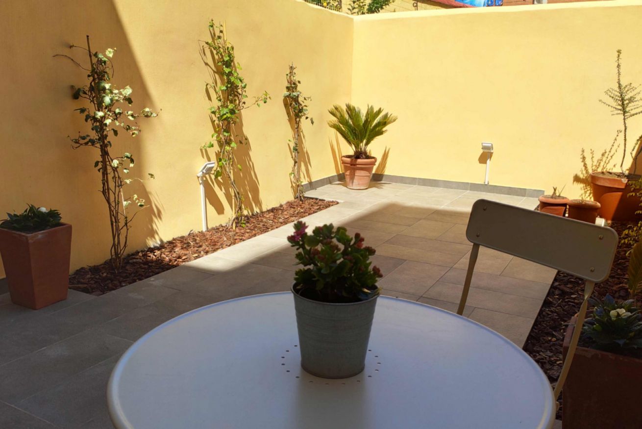 70 square metres suite with two bedrooms, two bathrooms, kitchen and private garden